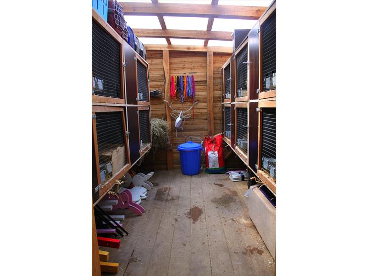 Stalden består af 10 bure, 6 på den ene side og 4 på den anden.