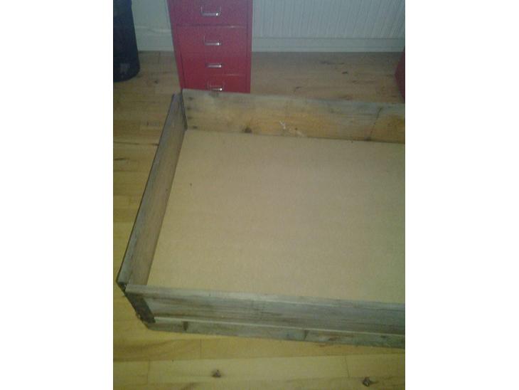 jeg fandt en palle og en kant og tænkte det ville egentlig være en god størrelse til 2 marsvin, så jeg gik i Bauhaus og købte en tyk bund. 79*119 lige lidt under palle målene som er 80*120. så havde jeg en rest voksdug (ved godt den ikke er særlig yndig griner) som jeg bankede op af kanten. jeg satte en ekstra kant på så nu er siderne ca. 40 cm. ja så savsmuld og masser af hø og æble grene og tørre bark huse. jeg fik så den ide efter at have kigge rundt på nettet at sy 2 turkise bløde fleece rør de kan putte i. så er det klar til belli og den nye ven (har ikke fået navn endnu)