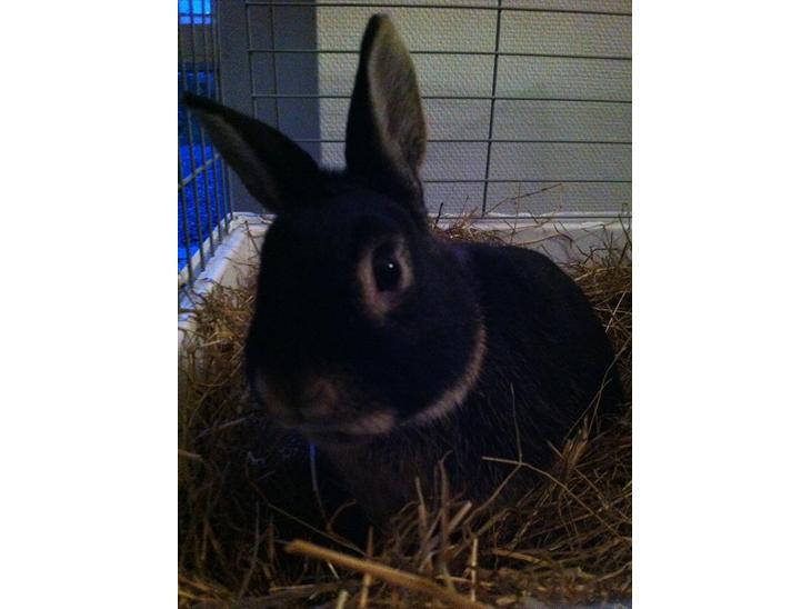 Ved ikke hvor meget han vejer, men han er på størrelse med en almindelig dværgkanin.
