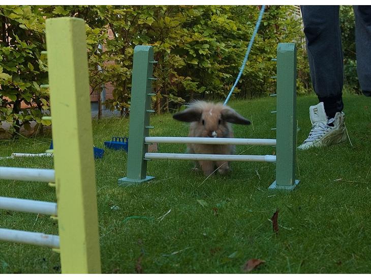 Han er en meget glad kanin :D så han kan nogen gange ikke styre det, så han er nød til at lave sådan nogen små søde hop når han er ude og opleve den spænende verden udenfor buret. (:
