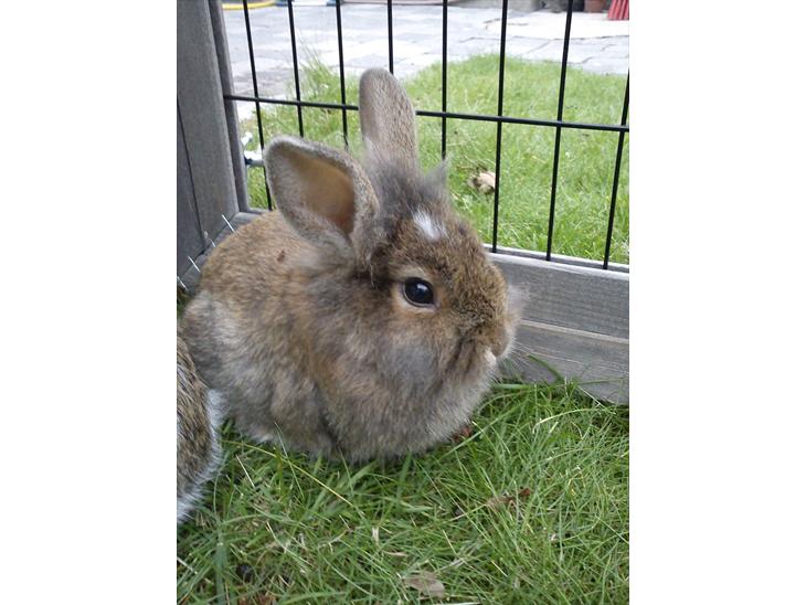Nu går hun rundt på græs om dagen og bliver lukket ind i buret om natten:)