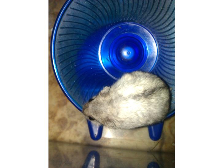 Et af mine søde små dværghamstre. Har 3,4 ialt. Starter stille om med at oprette et bur af gangen ;) De er ikke så fotogene mine hamstre ;)