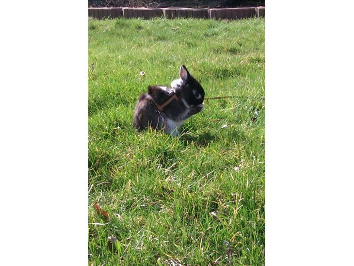 Han er klart en lille hyper-kanin han kan ikke sidde stille i 2 min. men ellers rigtig nuttet og tam