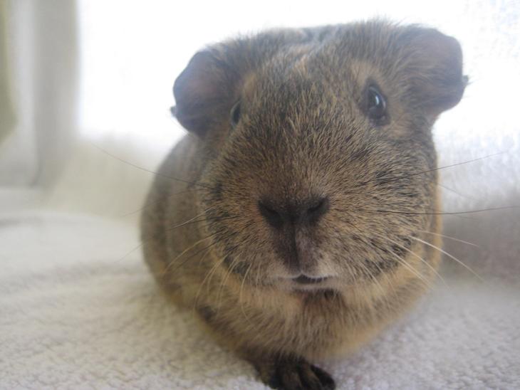 På morens side er hun ren Buff og har fuld stamtavle, men på farens side var det et Satinmarsvin købt i dyrehandleren med ukendte forældre osv. Det er en dejlig blandning skal jeg hllse og sige, forældrenes træk lægger man hurtigt mærke til, ikke blot på udseendet men temperamentet :)
