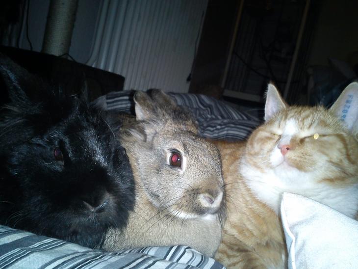 hvis en mand tog sin hånd ned til ham og han (dame) angreb han vedmindre jeg sagde "nej blacky han må godt være der) så kikkede han op på mig og så stoppede han, han er min første hun kanin ninus´s unge han er halv løvehoved.