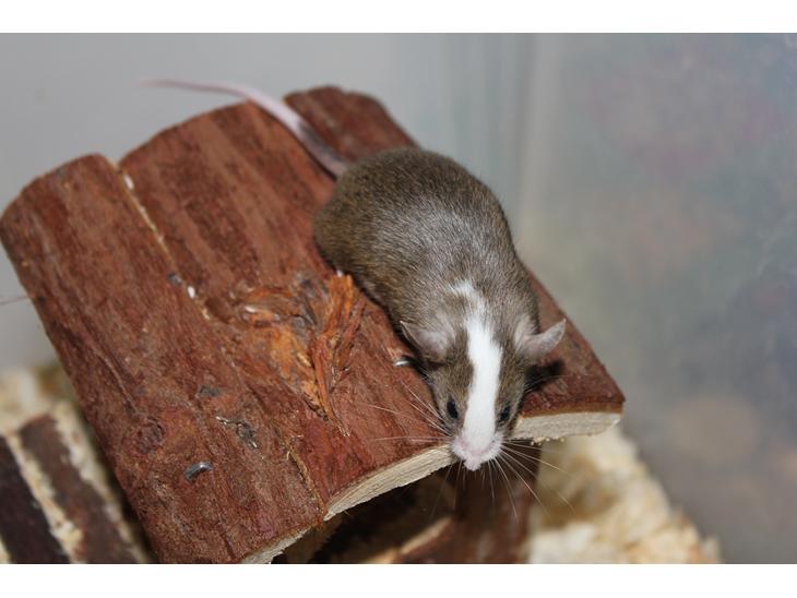 Hun blevet fundet på en parkeringsplads af en bekendt, og så tog jeg hende til mig. Hun er nu medlem af "B-Banden" og hygger sig med de to andre tøser. Hun elsker at at grave i savsmulden i terrariet.