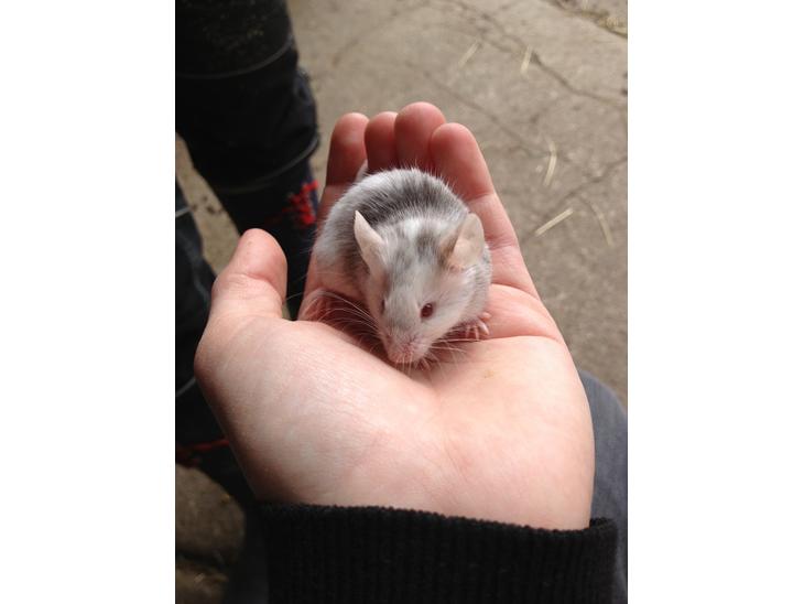 Blood er en virkelig dejlig mus. De første par gange man bare fik sin hånd i nærheden af hende piv hun som om vi ville gør hende ondt, hun var også pisse bange for de andre hunner. Lige siden vi fik hende arbejdede vi med hende.