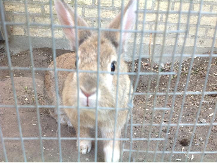 I Buret: Hun er glad og kommer løbende når man kommer, hun bor udendørs og er en rigtig kælepotte.