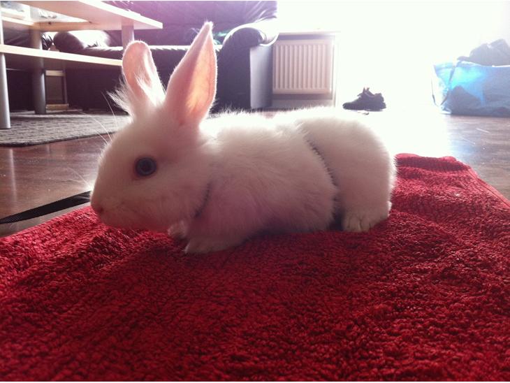 Ninus er en meget glad kanin. Han er nysgerrig, glad, nyder selskab, energisk, venlig, rolig og glad for vores 2 årig dreng.