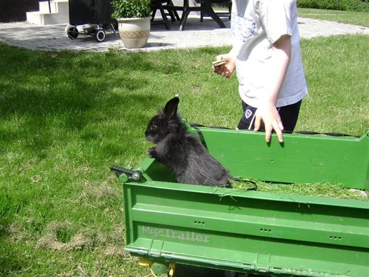 han er nok også den mest lydige kanin jeg har mødt, han kan rende fri og man sætter sig bare og kalder på så kommer han hen og hopper op hos en :o)