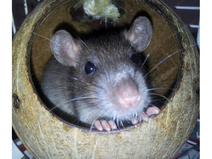Her er det nyeste medlem af rottereden :) Han er den dejligste lille puttetrold, super sød og nysgerrig, Han er en modig lille en, og der er ikke meget der kan skræmme ham. Han er legesyg, og vil meget gerne jagte min hånd og han farer rundt med krudt i røven sammen med teenagelømlerne, for i det næste øjeblik at putte sig op i mit ærme for at tage en lur!