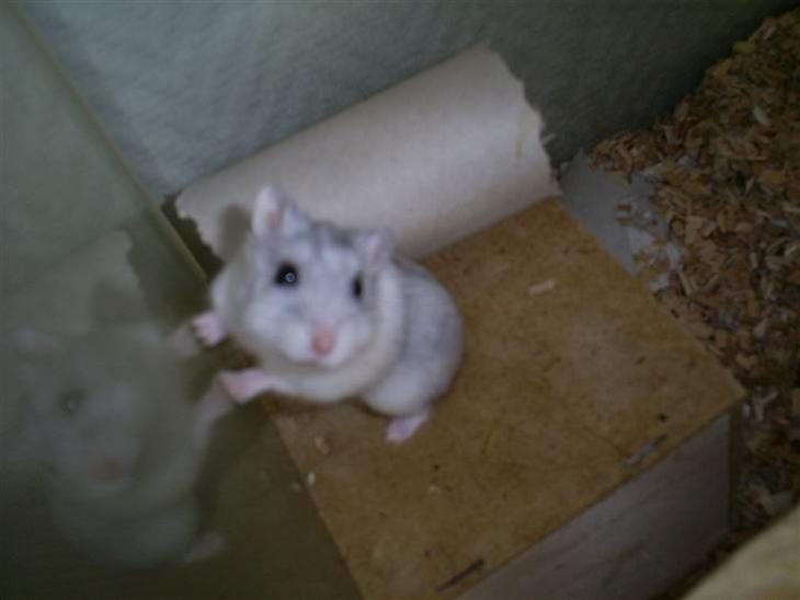 Sødt sødt lille væsen :) Sin egen herre når han ikke gider lege mere, alle unger som kommer her elsker ham mest, fordi han elsker at kralve ned i en lomme og putte sig <3 det er super sødt når han gør det! Han elsker sit løbehjul mere end det andet legetøj han har, det blir brugt godt hver dag, han er et kondi hamster :D