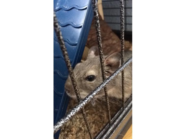 Lotus er en smuk grå degu. Hun er lidt forsigtig og reserveret men også nysgerrig og vil rigtig gerne hilse men tør ikke helt. Hun har kun stået en enkelt gang på min hånd med forpoterne i projektet om at gøre dem håndtamme og er lidt genert. Hun holder sig helst i baggrunden når jeg er ovre ved buret. Ellers løber hun glad rundt i buret og er rigtig aktiv!