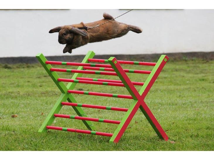Bobo startede med at være rimelig doven anlagt, men da han var tæt på de 6 måneder blev han en helt anden, han fik fut under fødderne og blev fra en meget langsom kanin til en rimelig hurtig. Han har taget plac på de fleste af hans starter op til eliten, hvilket har gjord han var i elite på både lige og kroget da han var omkring 1 år. nu skal han lige ind i eliten så skal det nok blive godt, højden er ikke noget problem, hoved skal bare lige følge med :)