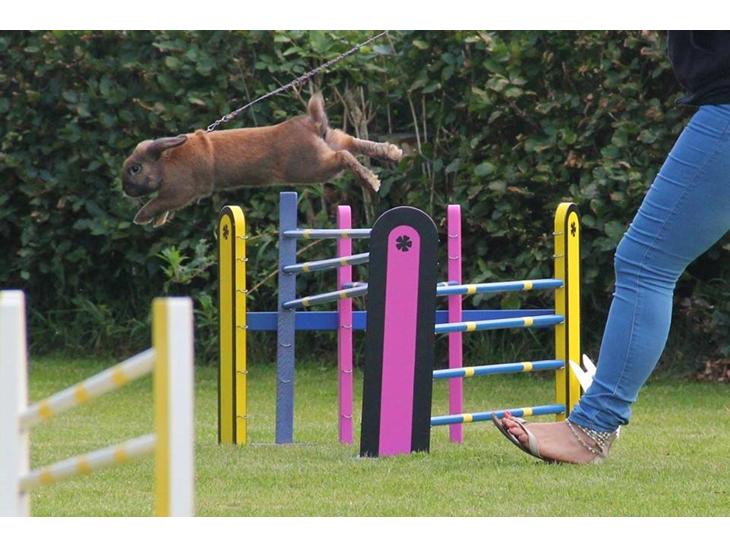 Marco blev egentlig først min da han var lidt over et år, men jeg har altid fulgt ham og haft ham med til stævner de gange hans tidligere ejer ikke kunne komme med, så da jeg endelig fik lov at købe ham blev jeg mere end glad! Marco er en kanin der rummer en masse talent i mine øjne, han blev dog rigtig usikker på elite højden i en periode hvilket gjorde han hoppede skævt, nu arbejder vi rigtig meget på at få selvtilliden med, for højden og længden på de forskellige spring er bestemt ikke et problem. han hopper det meste stående, og har et stort afsæt til sagtens at kunne gøre det. dog ser det lidt bedre ud når han luller stille frem til springene.