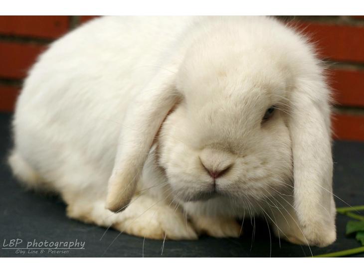 Den største kælepotte - nyder al form for kontakt. Hun er rigtig tålmodig og generelt bare en super god kanin