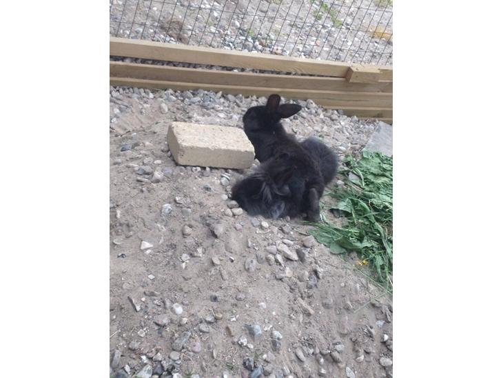 Han er ren løvehovedkanin med masser af hår og er helt sort.