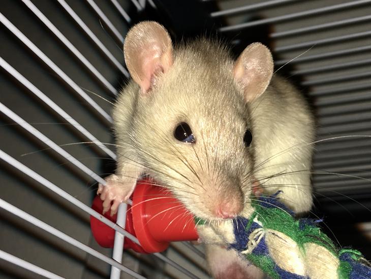 Far: FoxyRats’ Last Whisper - Black eyed siamese self rex dumbo