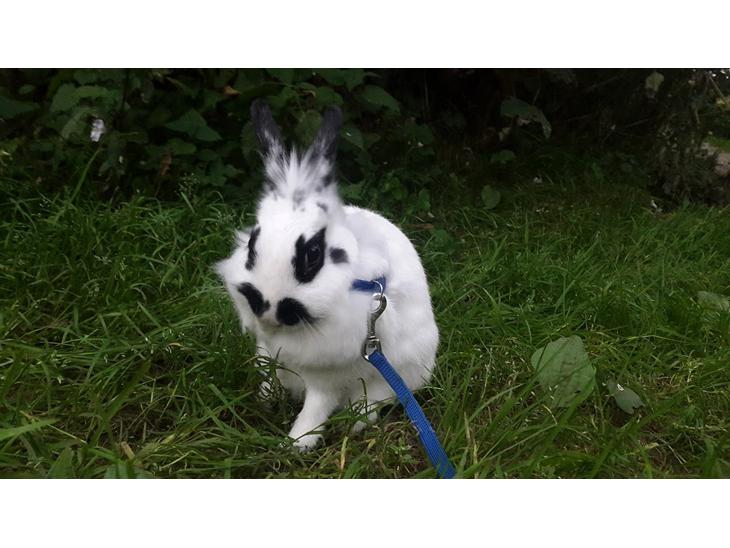 Hun er lidt sky, men kan godt lide at sidde på ens lår og blive nusset. Hun kan godt gå i sele og hoppe, men det har vi ikke gjort i lang tid efterhånden.