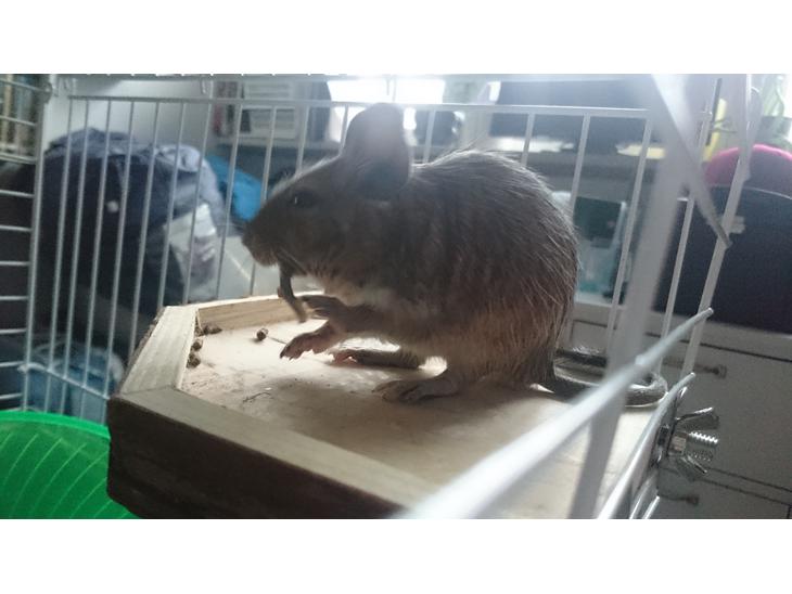Min mor er en flot lysegrå degu mens min far er brun. Jeg har 5 brødre og bor sammen med en af dem. Vi var de eneste der havde lidt hvid på os.