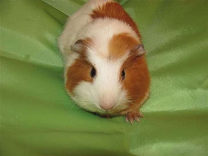 Hun er en sød lille en med en virvel i panden og en meget blød pels. Vi har haft hende i 2 uger og hun bor sammen med pige..