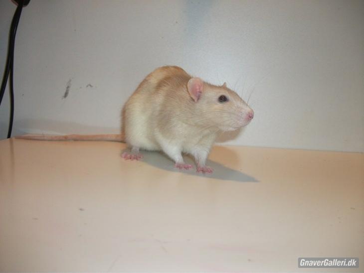 han blev så resseveret, men det endte med jeg fik ham alligevel, fordi de ikke kunne have flere drengerotter :D da jeg var oppe og hente ham, så jeg bare den kønne lille tot. Han var bare så kontaktsøgene at jeg blev helt overrasket. Han var jo en af mine første 3 rotter, så havde ikke så meget erfaring med dem, så da han kom løbene hen sammen med de andre og bare kravlede op og slikkede mine hænder, var jeg bare helt væk. Virkelig en skøn tot. :)