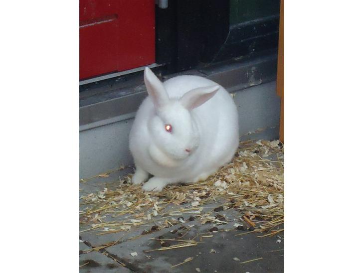 Ja det er hun. Men hun kan ikke gå sammen med andre hunkaniner længere. Hun har ellers gået med sin mor i et års tid. Men da hun fik unger her i mandags bed hun sin mor forneden så hendes mor blev fjernet.