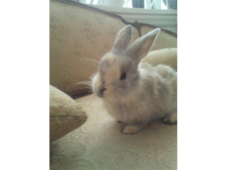 hun er en lille frisk kanin, men lidt sky overfor fremmede. hun er rolig hvis hun kender en godt.